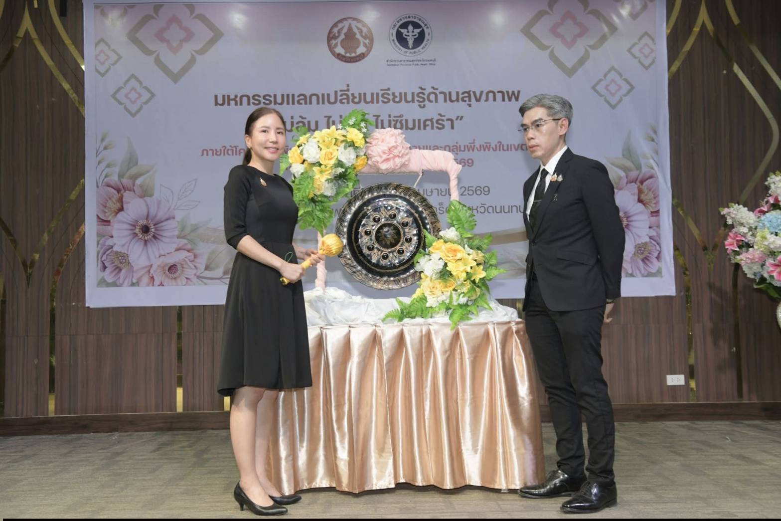 งานดังกล่าวจัดขึ้นภายใต้โครงการพัฒนาระบบการดูแลผู้สูงอายุและกลุ่มพึ่งพิงในเขตเมืองและชุมชนจังหวัดนนทบุรี ประจำปี 2569 โดยมีนางสาวปาณิสรา กาญจนะจิตรา รองผู้ว่าราชการจังหวัดนนทบุรี เป็นประธานในพิธีเปิด และนายแพทย์ปริพนท์ จุลเจิม นายแพทย์สาธารณสุขจังหวัดนนทบุรี กล่าวรายงานวัตถุประสงค์การจัดโครงการฯ